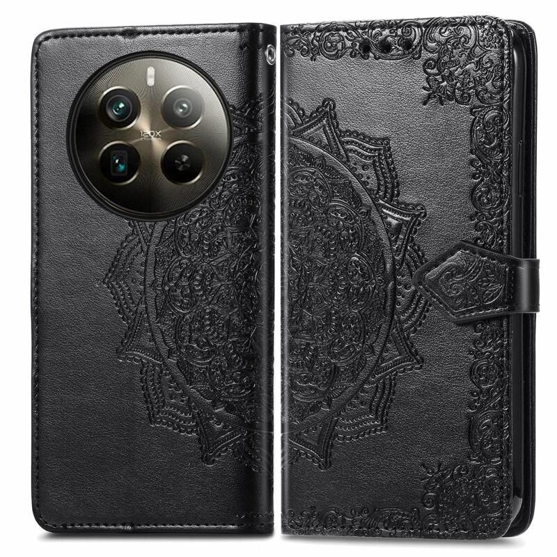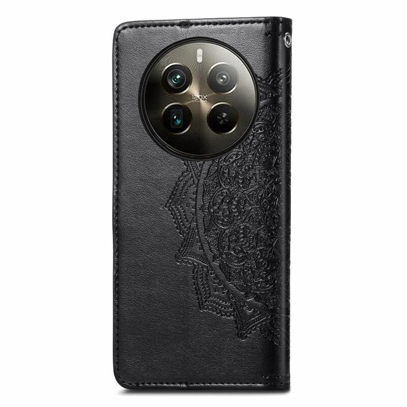 Για Realme 12 Pro + Mandala λουλούδι ανάγλυφη δερμάτινη θήκη τηλεφώνου (Μαύρο)