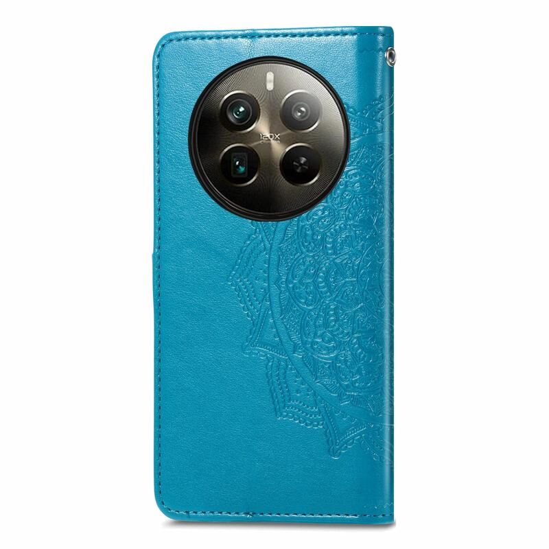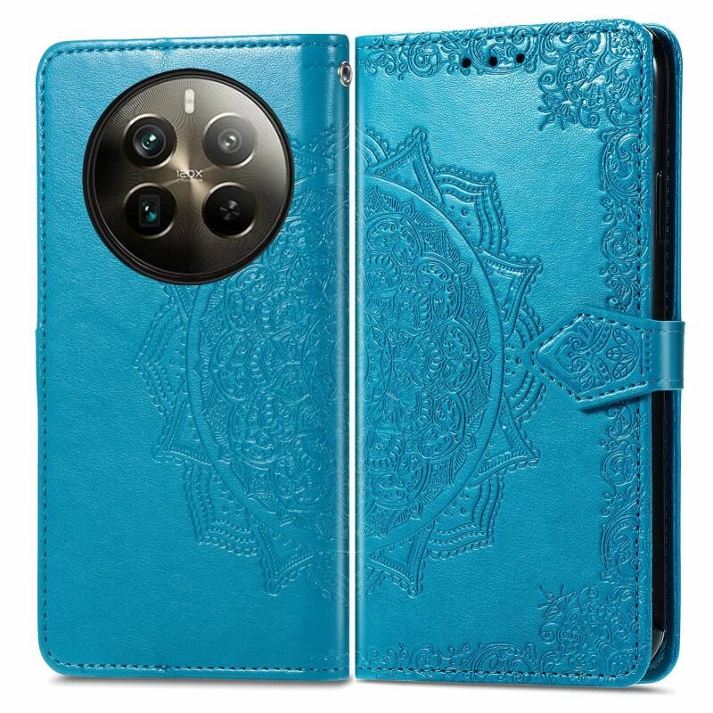Για Realme 12 Pro + Mandala λουλούδι ανάγλυφο δερμάτινη θήκη τηλεφώνου (μπλε)