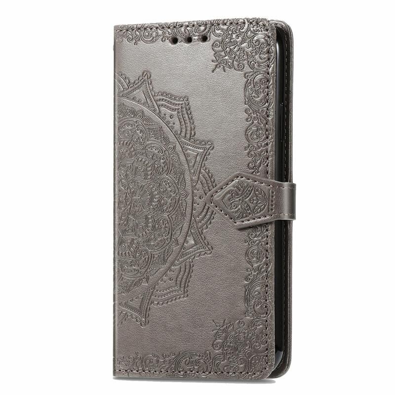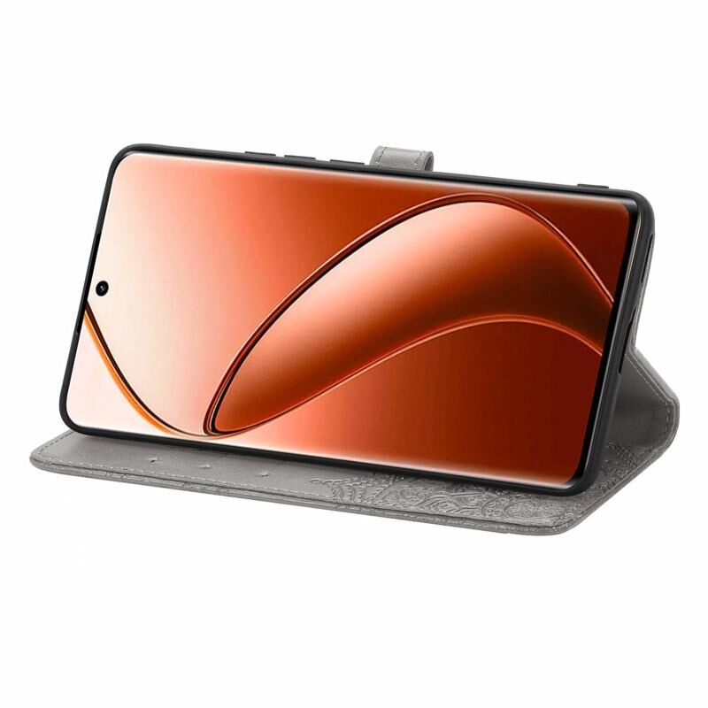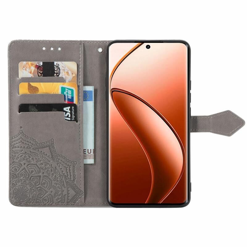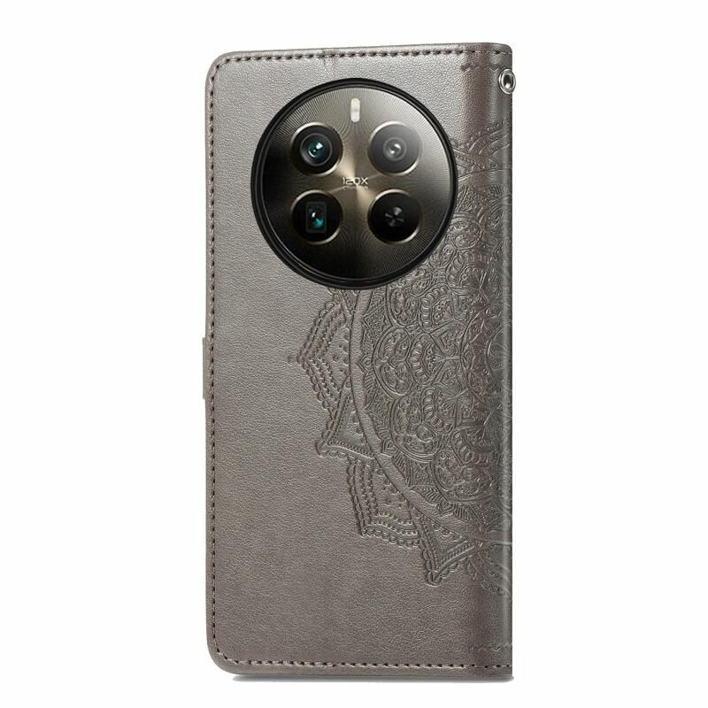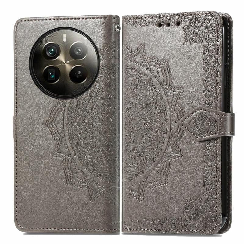 Για Realme 12 Pro + Mandala λουλούδι ανάγλυφο δερμάτινη θήκη τηλεφώνου (γκρι)