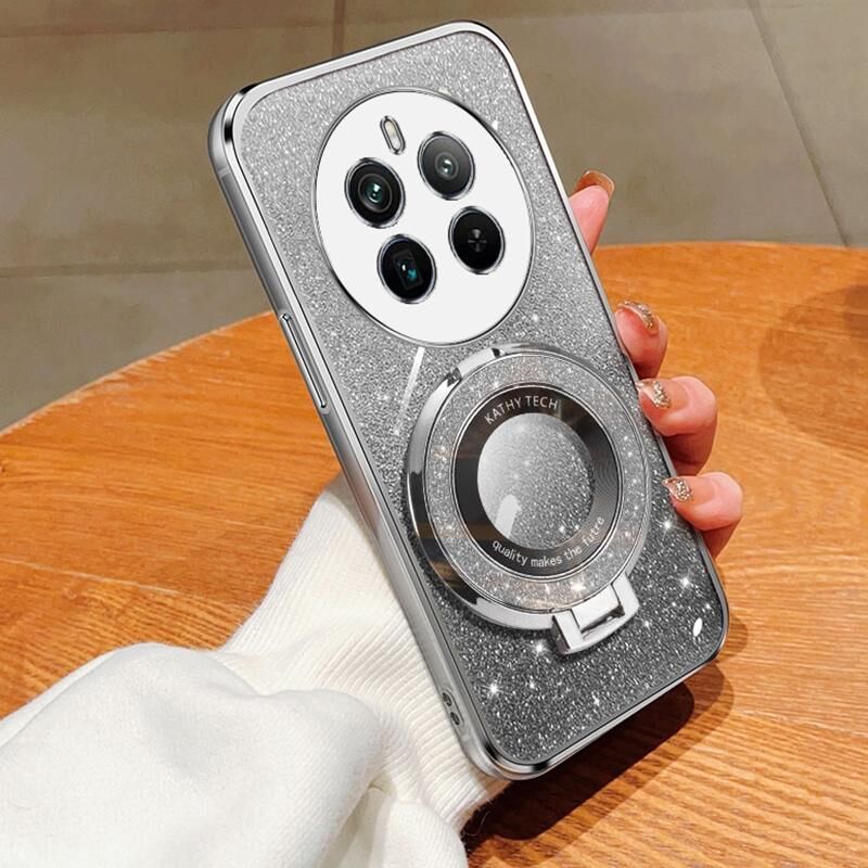 For Realme 12 Pro+ Plated Gradient Glitter Round Holder TPU Phone Case(Silver)