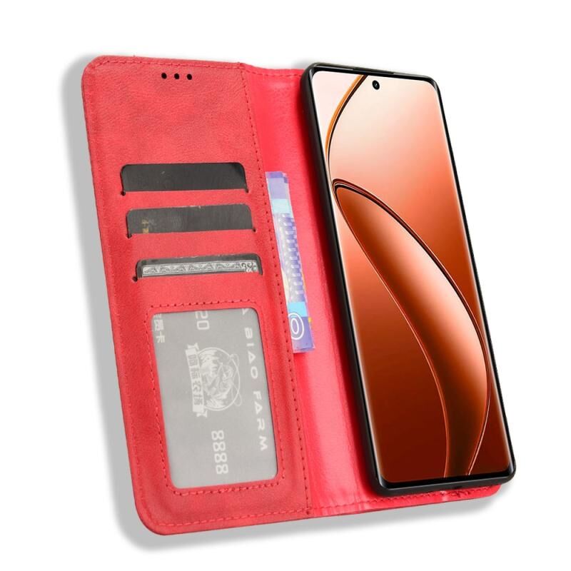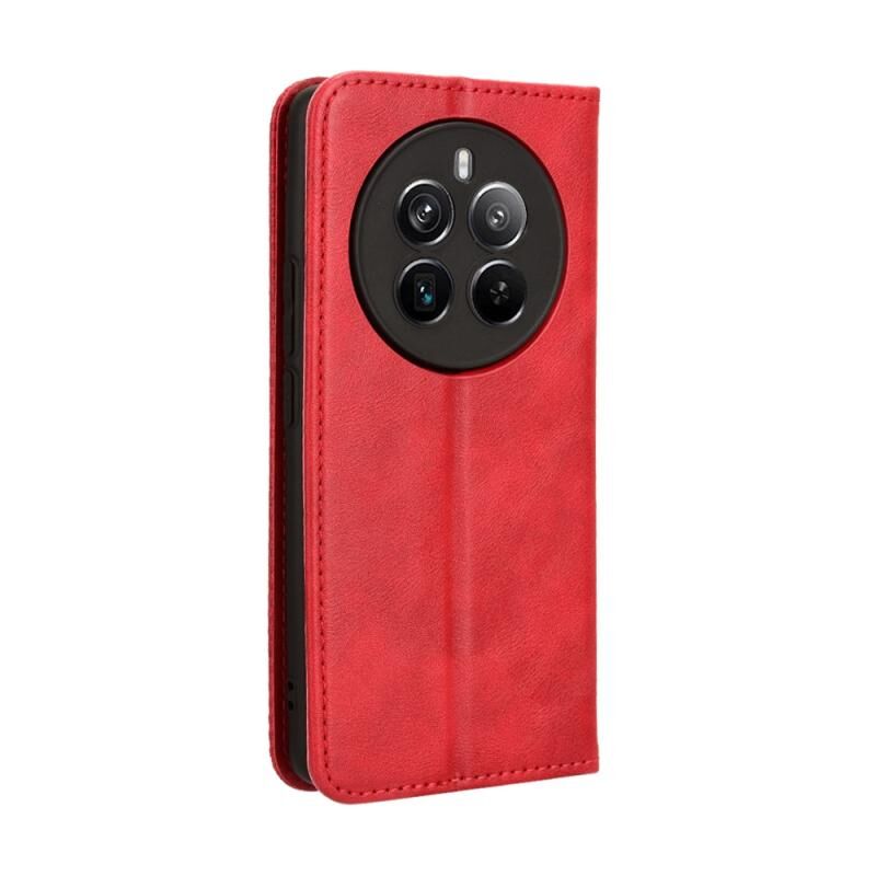 For Realme 12 Pro / Pro+ 5G Magnetic Buckle Retro Texture Leather Phone Case(Red)