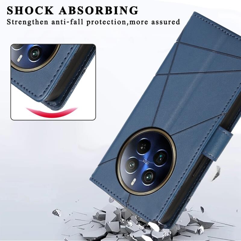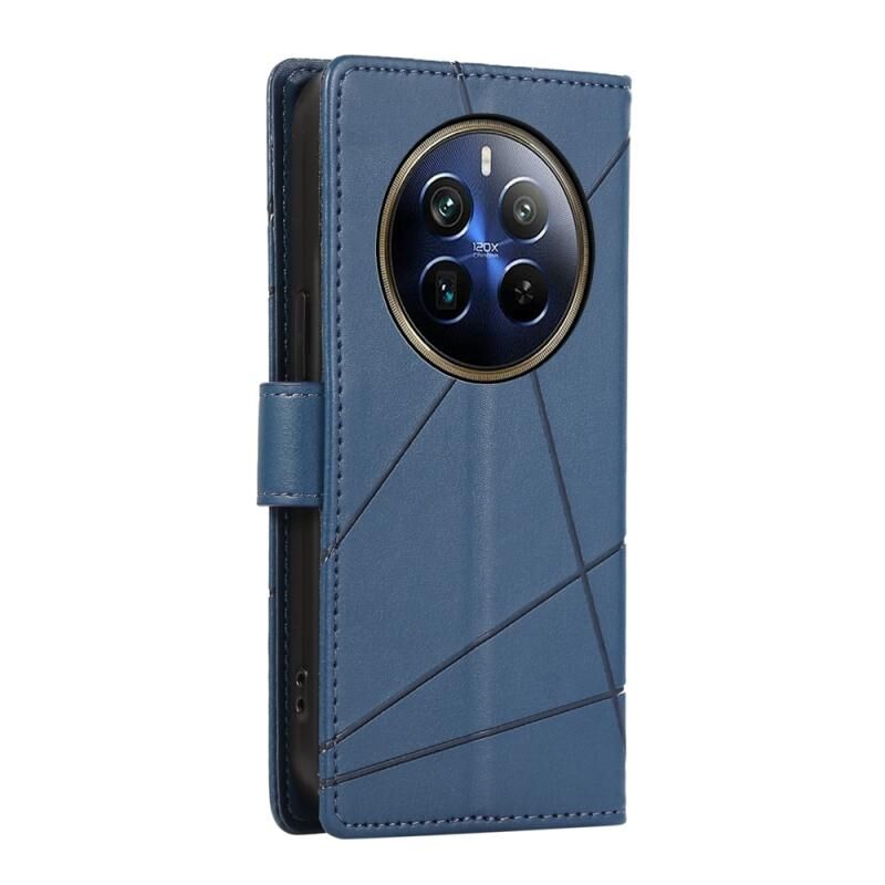 For Realme 12 Pro+ PU Genuine Leather Texture Embossed Line Phone Case(Blue)