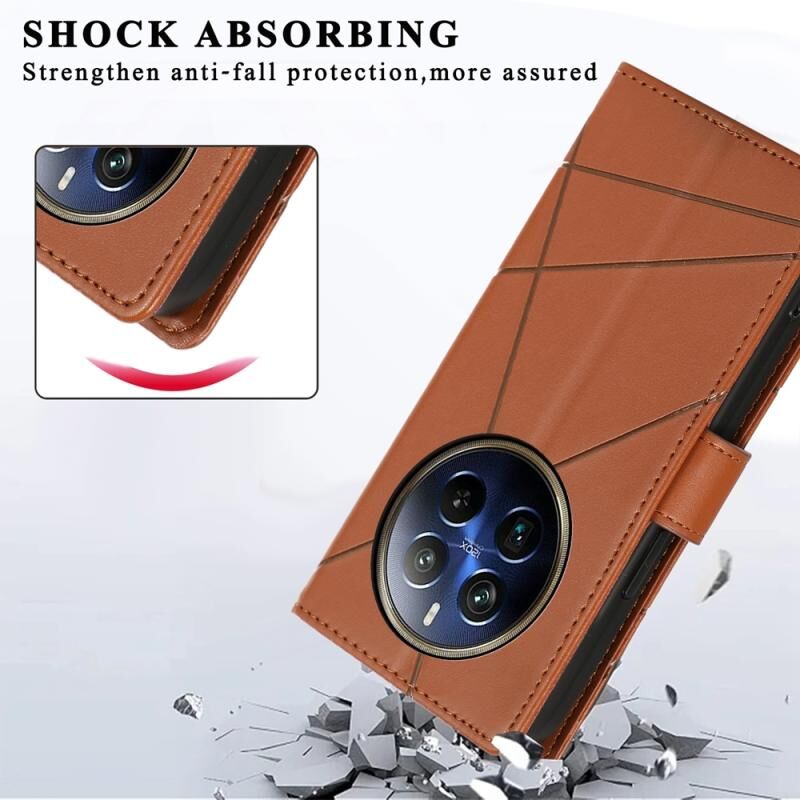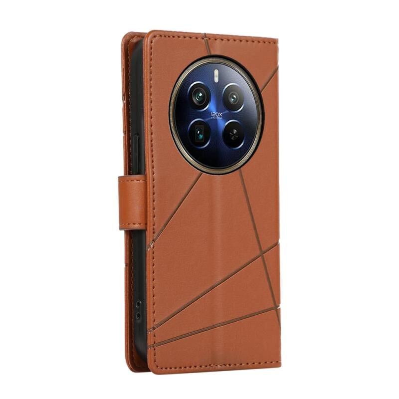For Realme 12 Pro+ PU Genuine Leather Texture Embossed Line Phone Case(Brown)