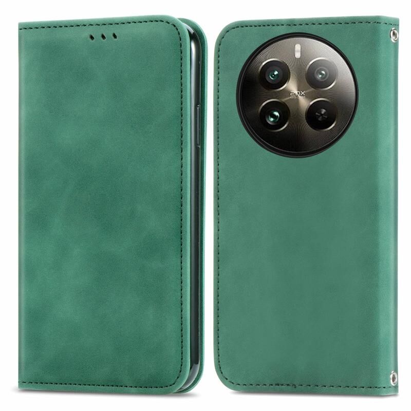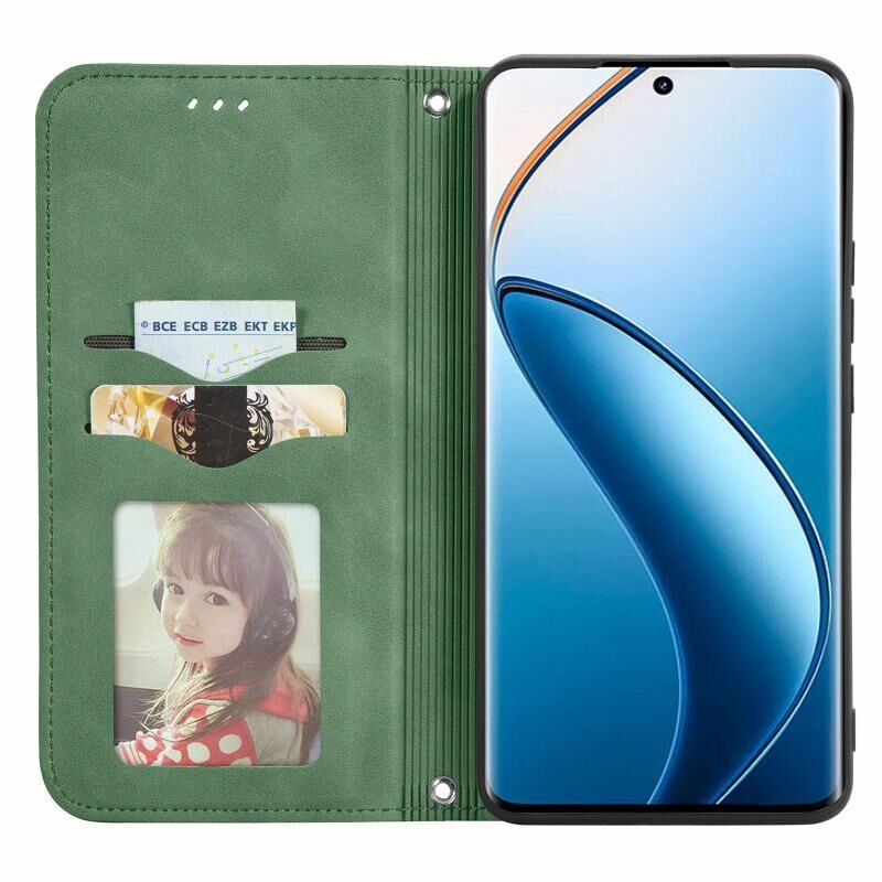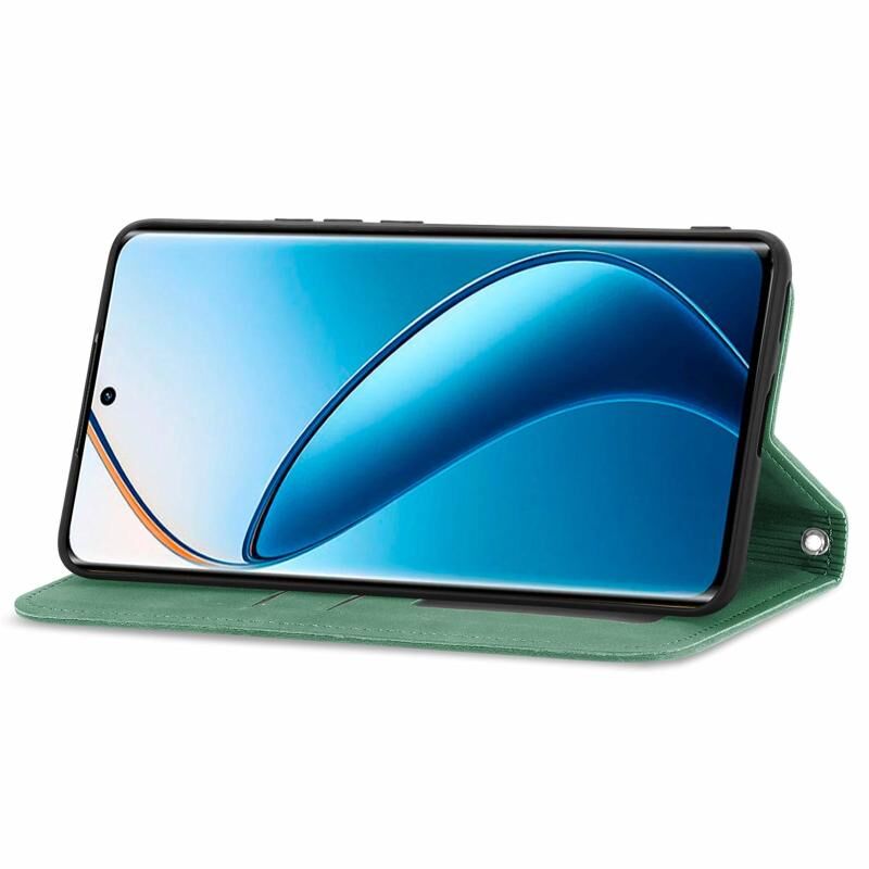 Θήκη τηλεφώνου Realme 12 Pro με μαγνητικό κλείσιμο, δερμάτινη, με υφή retro (Πράσινη)