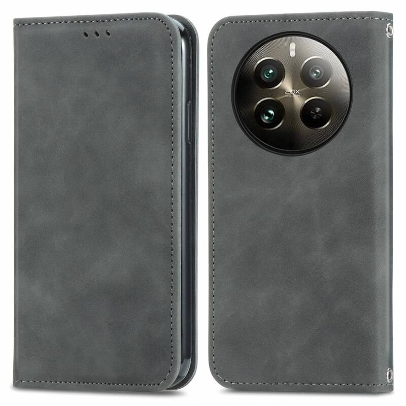 Θήκη τηλεφώνου Realme 12 Pro με μαγνητικό κλείσιμο, δερμάτινη, με υφή retro (Μαύρο)