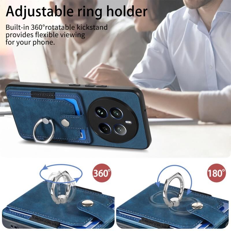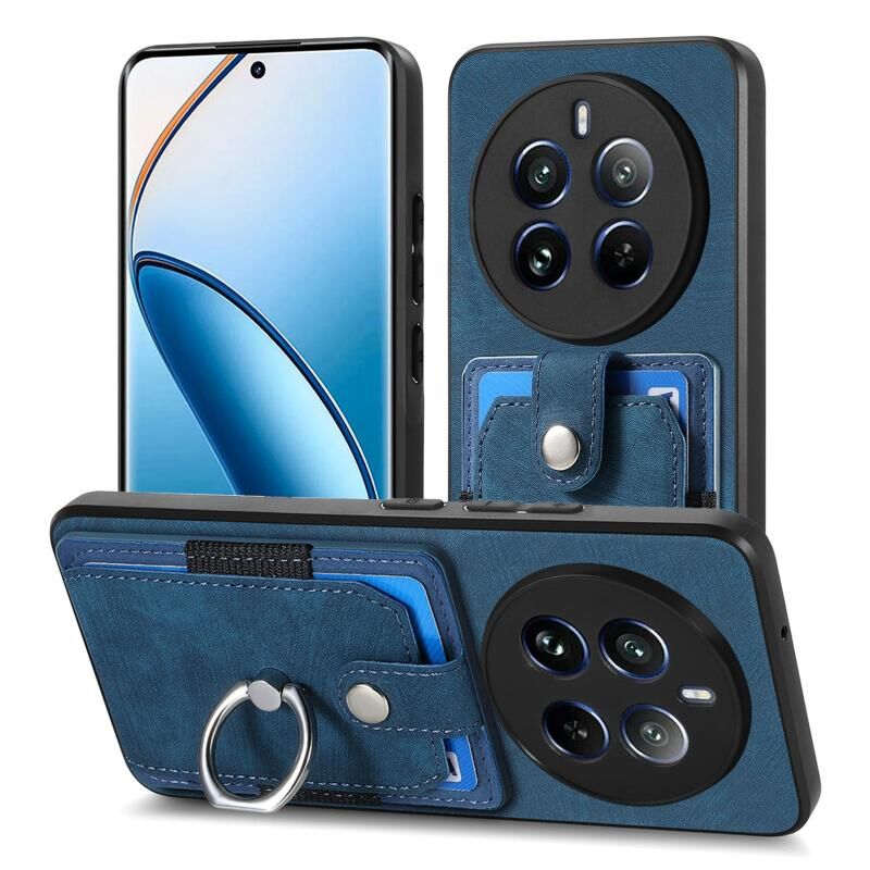 Για Realme 12 Pro Ρετρό δέρμα αίσθηση δαχτυλίδι κάρτα πορτοφόλι υπόθεση τηλεφώνου (μπλε)