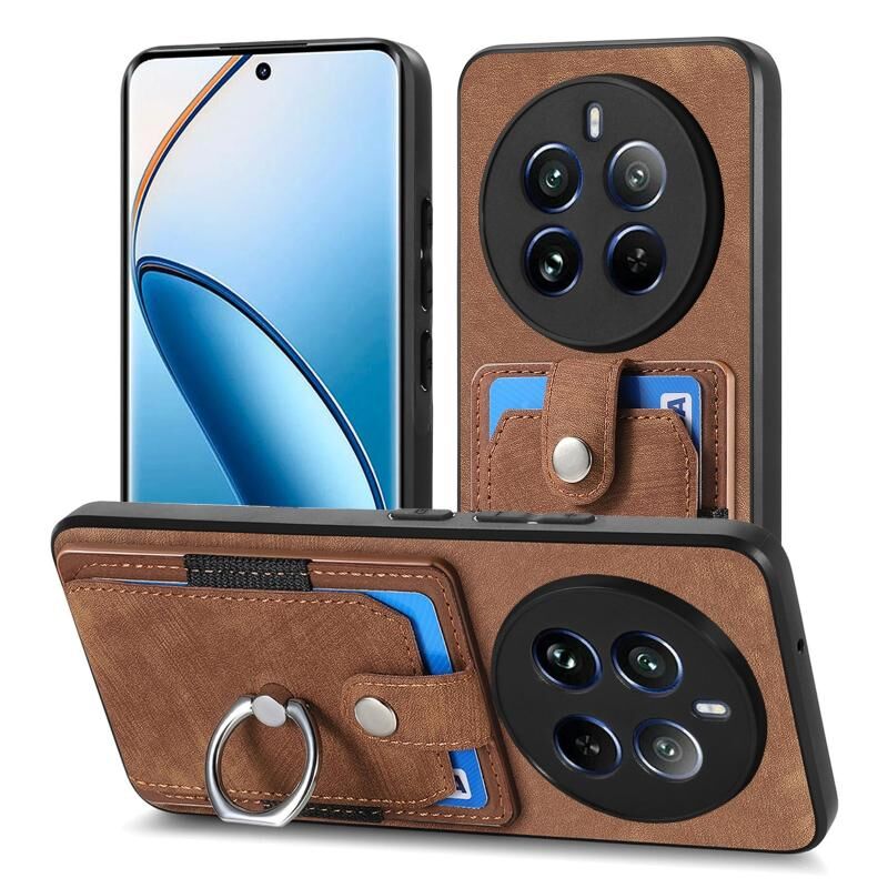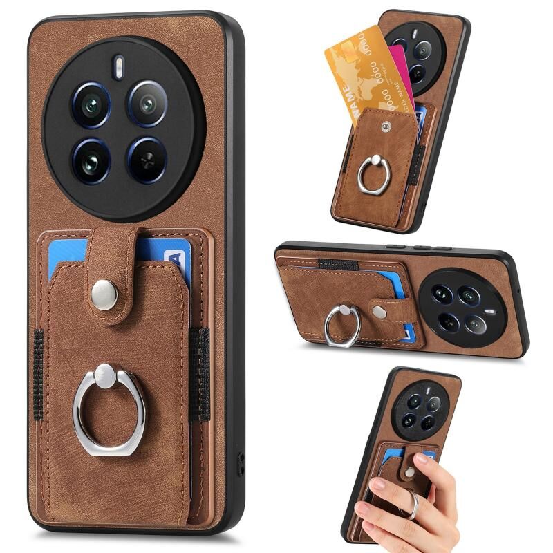 Για Realme 12 Pro Ρετρό δέρμα αίσθηση δαχτυλίδι κάρτα πορτοφόλι υπόθεση τηλεφώνου (καφέ)