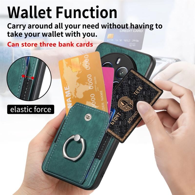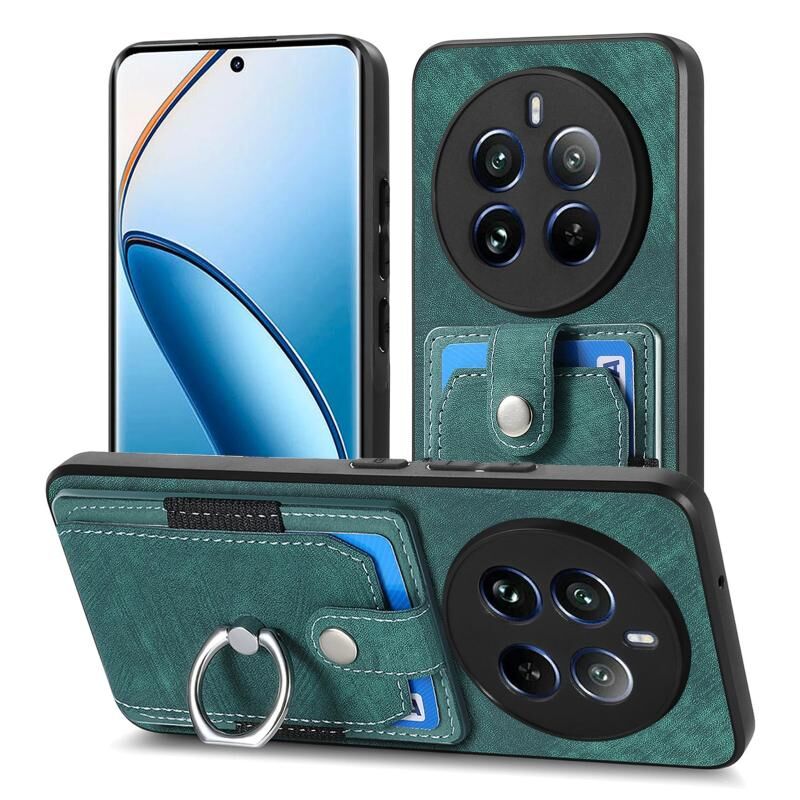 Για Realme 12 Pro Ρετρό δέρμα αίσθηση δαχτυλίδι κάρτα πορτοφόλι υπόθεση τηλεφώνου (πράσινο)