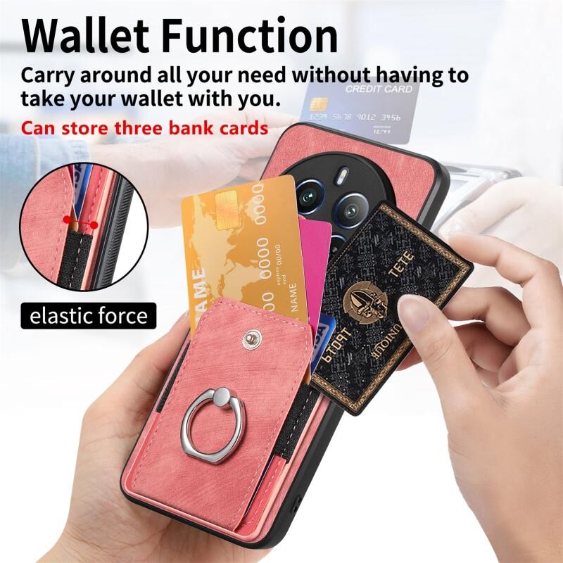 Για Realme 12 Pro Ρετρό δέρμα αίσθηση δαχτυλίδι κάρτα πορτοφόλι υπόθεση τηλεφώνου (ροζ)