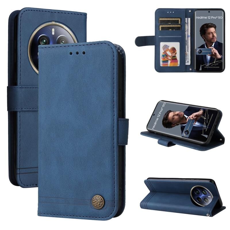 For Realme 12 Pro+ Skin Feel Life Tree Metal Button Leather Phone Case(Blue)