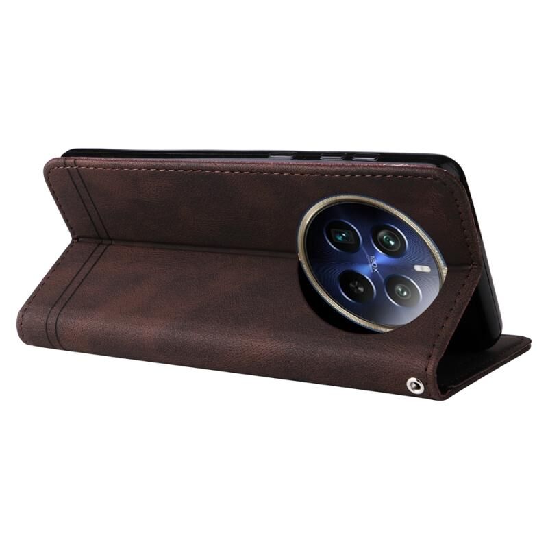 For Realme 12 Pro+ Skin Feel Life Tree Metal Button Leather Phone Case(Brown)