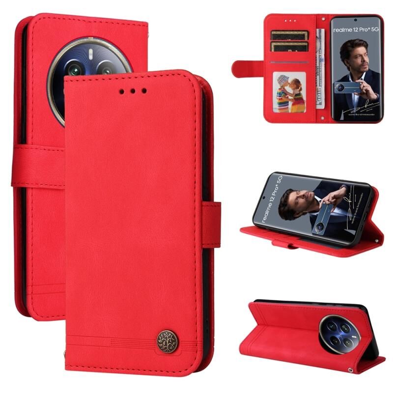 For Realme 12 Pro+ Skin Feel Life Tree Metal Button Leather Phone Case(Red)