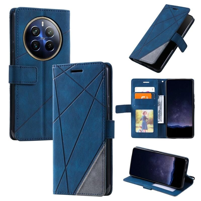 For Realme 12 Pro+ Skin Feel Splicing Leather Phone Case(Blue)