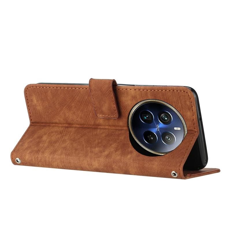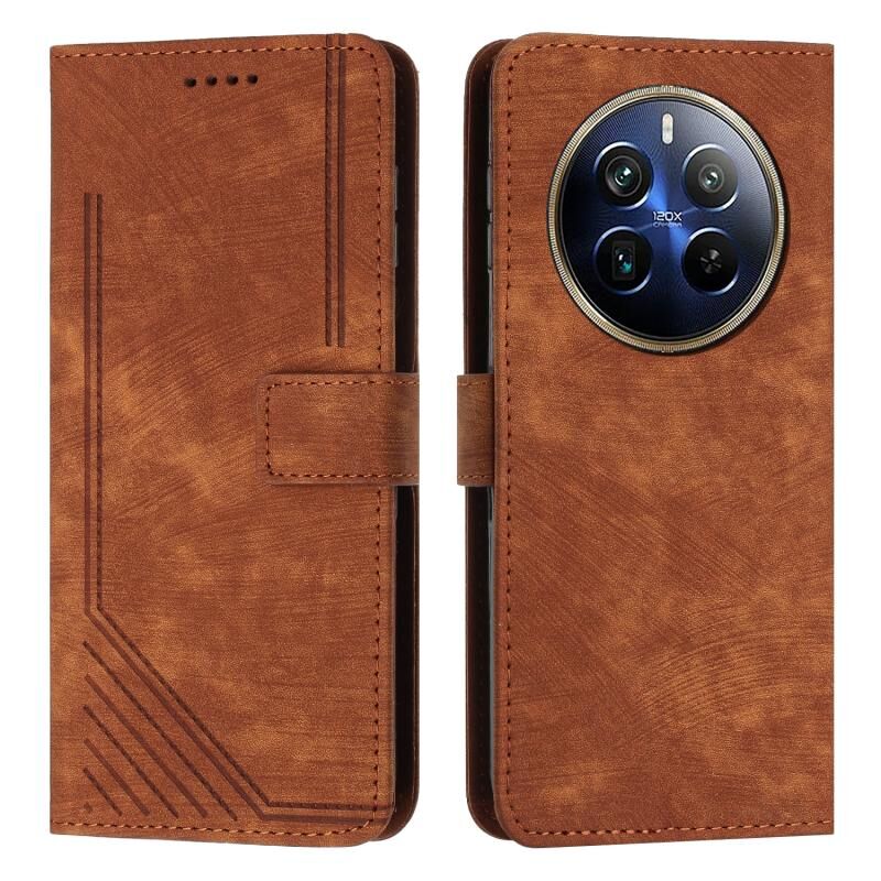 For Realme 12 Pro+ Skin Feel Stripe Pattern Leather Phone Case with Lanyard(Brown)