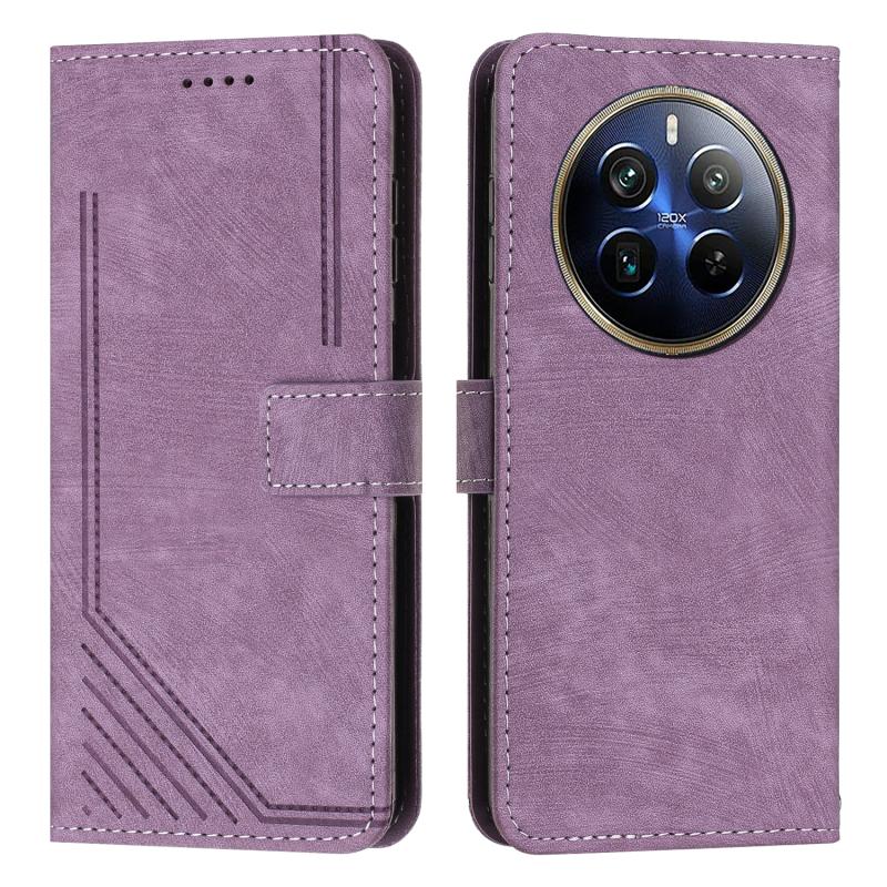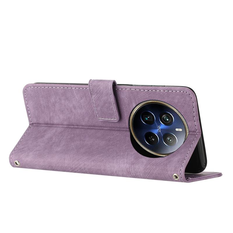 For Realme 12 Pro+ Skin Feel Stripe Pattern Leather Phone Case with Lanyard(Purple)