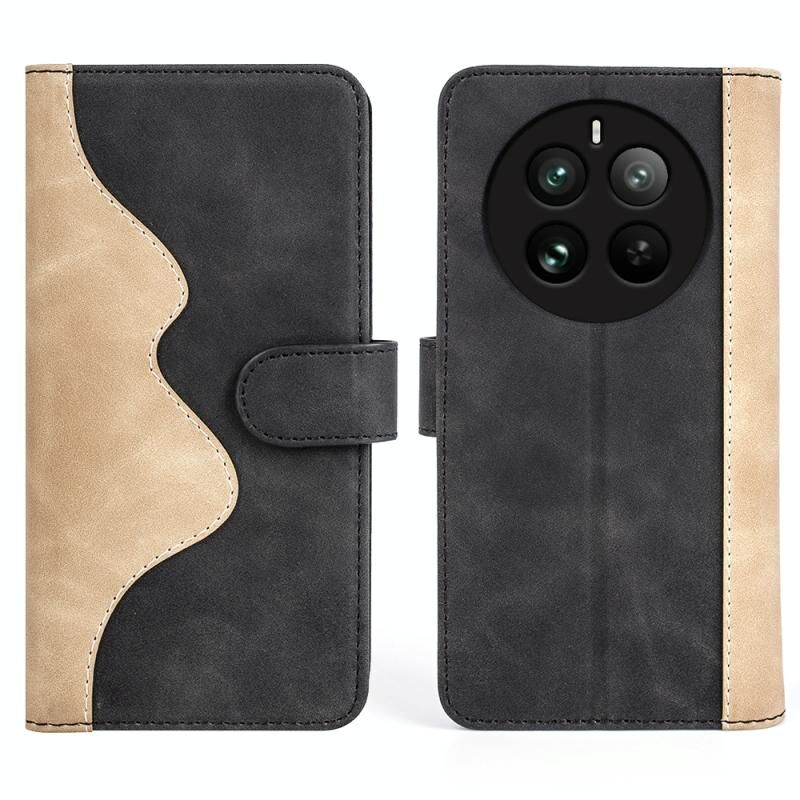 Για Realme 12 Pro + ραφή οριζόντια Flip δερμάτινη θήκη τηλεφώνου (μαύρο)