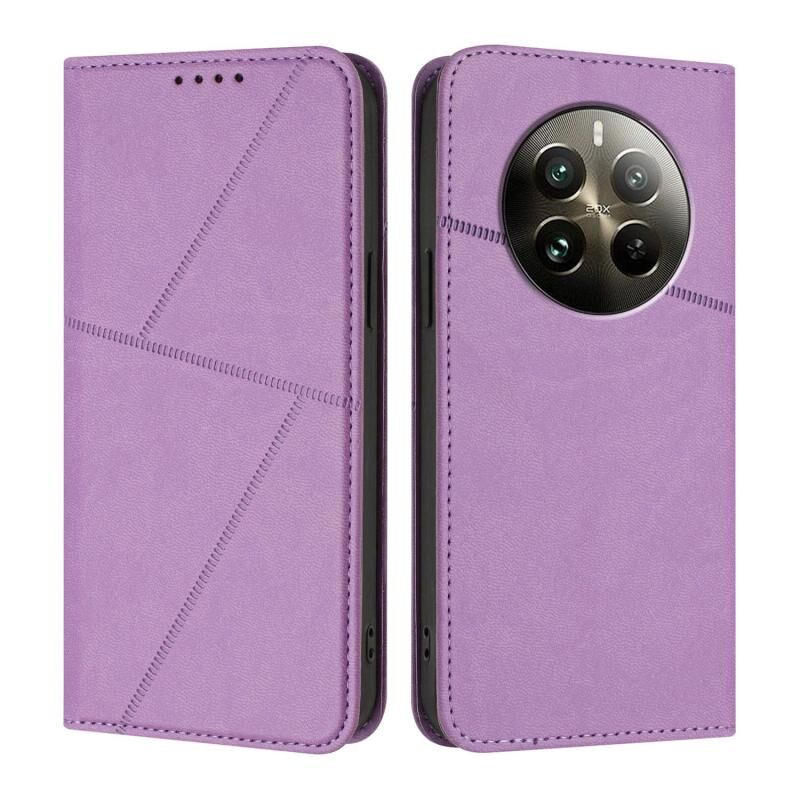 For Realme 12 Pro+ Strong Magnetic Frosted Flip Leather Phone Case(Light Purple)