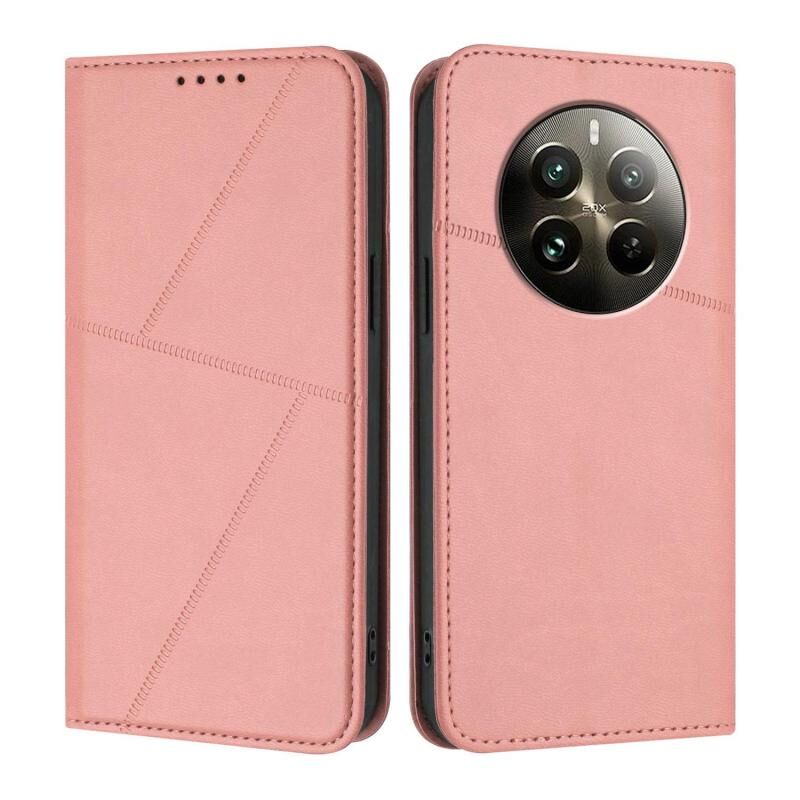 For Realme 12 Pro+ Strong Magnetic Frosted Flip Leather Phone Case(Pink)