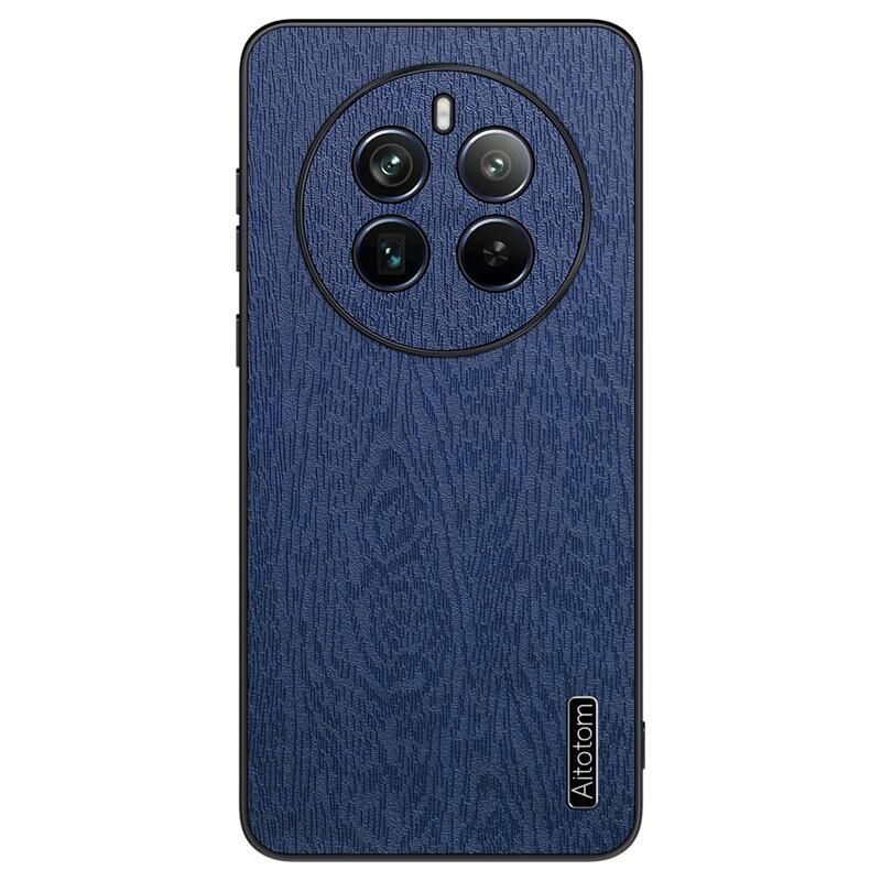 Θήκη κινητού Realme 12 Pro+ από δέρμα φλοιού δέντρου, αντικραδασμική (Μαύρο)
