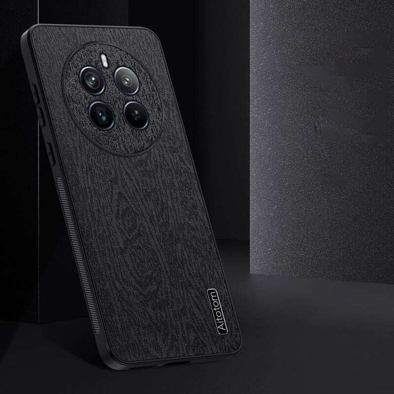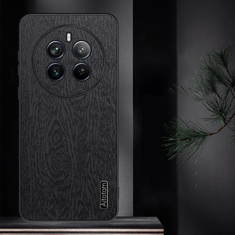 Θήκη κινητού Realme 12 Pro από δέρμα φλοιού δέντρου, αντικραδασμική (Μαύρο)