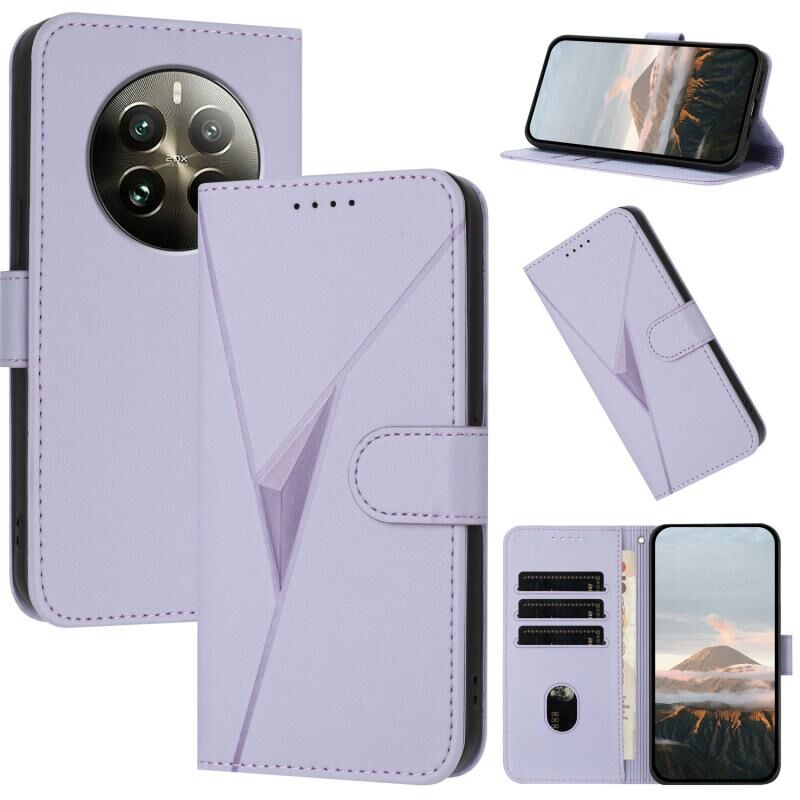 Για Realme 12 Pro Τρίγωνο μοτίβο αγκράφα κούμπωμα δερμάτινη θήκη τηλεφώνου (Light Purple)