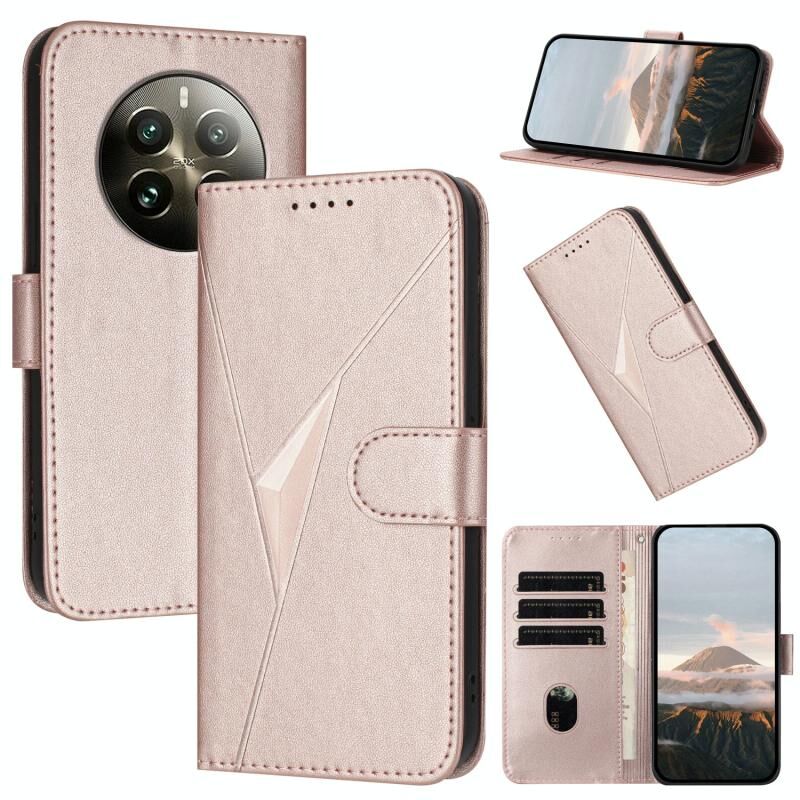 Για Realme 12 Pro + Τρίγωνο μοτίβο αγκράφα κούμπωμα δερμάτινη θήκη τηλεφώνου (Rose Gold)