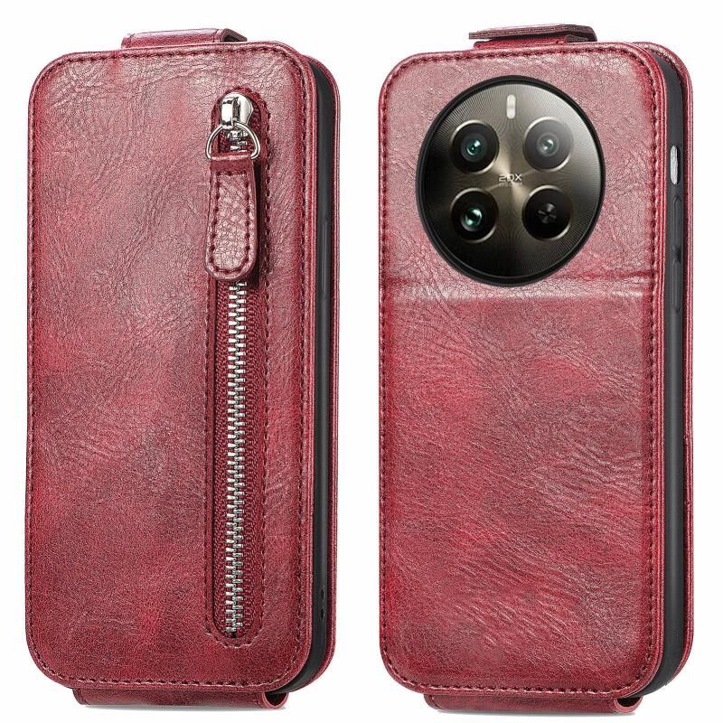 Για Realme 12 Pro φερμουάρ πορτοφόλι κάθετη Flip δερμάτινη θήκη τηλεφώνου (κόκκινο)