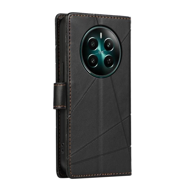 For Realme 12+ PU Genuine Leather Texture Embossed Line Phone Case(Black)