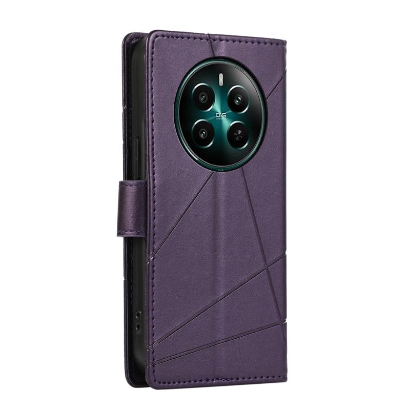 For Realme 12+ PU Genuine Leather Texture Embossed Line Phone Case(Purple)
