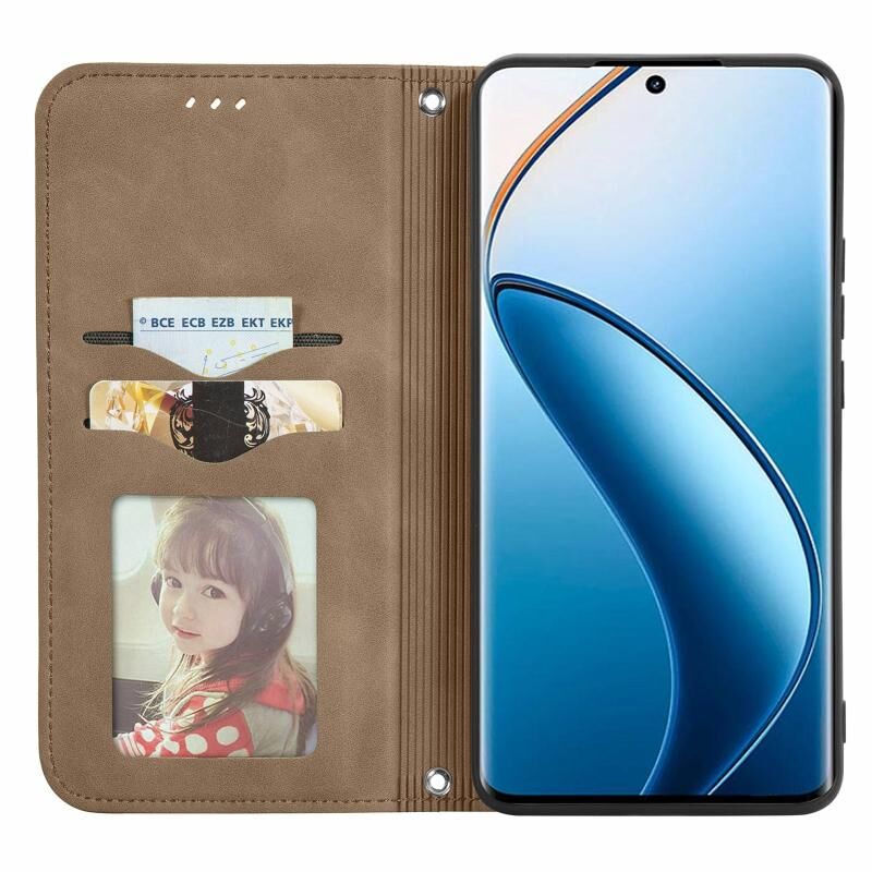Θήκη τηλεφώνου Realme 12+ με μαγνητικό κλείσιμο, δερμάτινη, με υφή retro (Πράσινη)