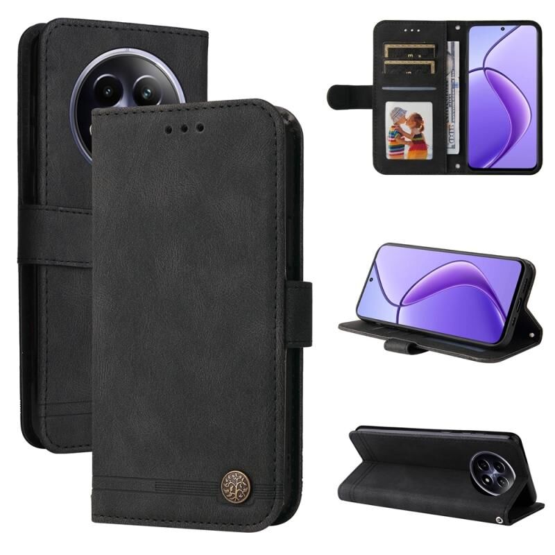 For Realme 12 Skin Feel Life Tree Metal Button Leather Phone Case(Black)