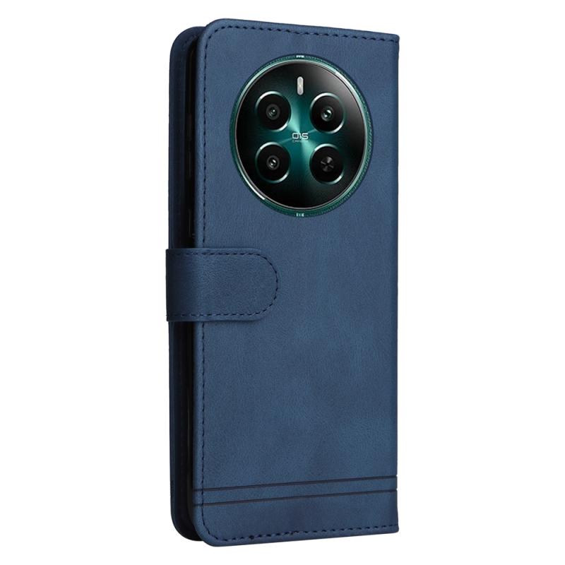 For Realme 12+ Skin Feel Life Tree Metal Button Leather Phone Case(Blue)
