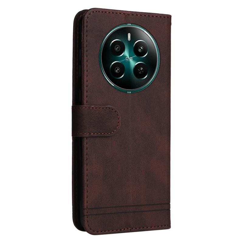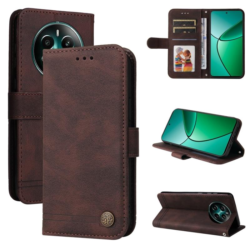 For Realme 12+ Skin Feel Life Tree Metal Button Leather Phone Case(Brown)