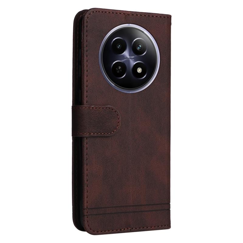 For Realme 12 Skin Feel Life Tree Metal Button Leather Phone Case(Brown)