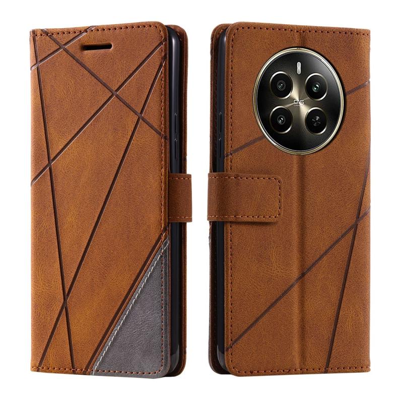For Realme 12+ Skin Feel Splicing Leather Phone Case(Brown)