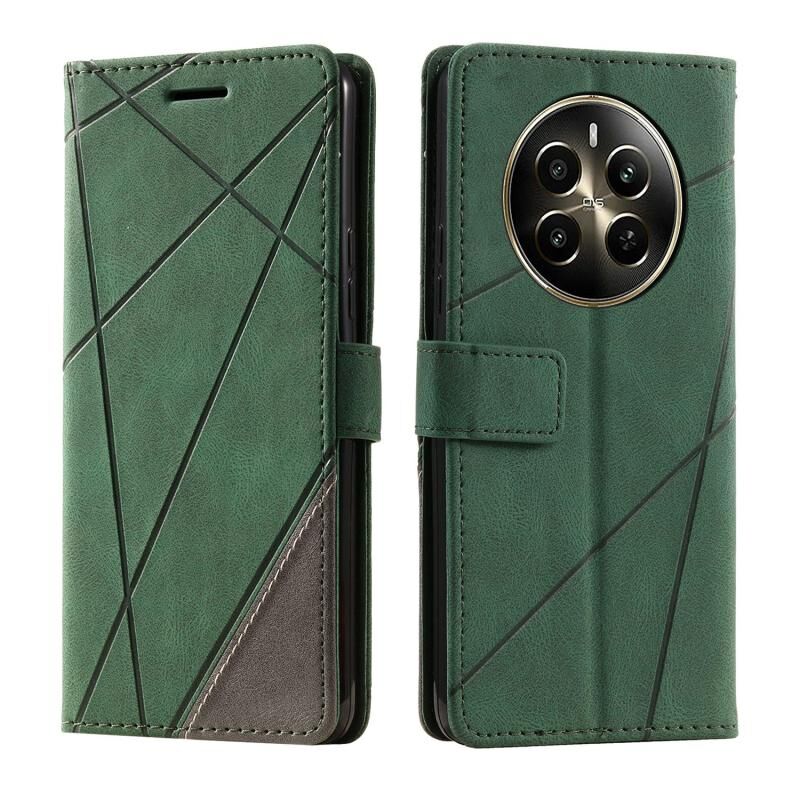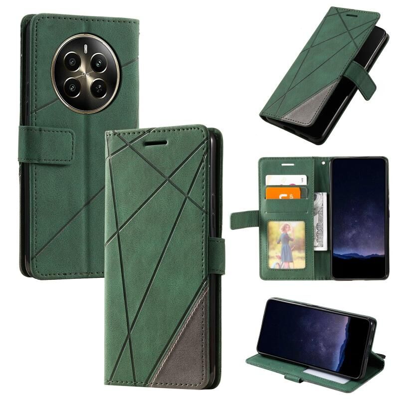 For Realme 12+ Skin Feel Splicing Leather Phone Case(Green)
