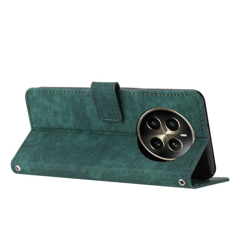 For Realme 12+ Skin Feel Stripe Pattern Leather Phone Case with Lanyard(Green)