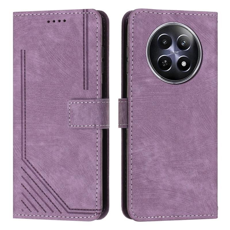 For Realme 12 Skin Feel Stripe Pattern Leather Phone Case with Lanyard(Purple)