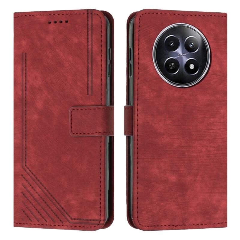 For Realme 12 Skin Feel Stripe Pattern Leather Phone Case with Lanyard(Red)