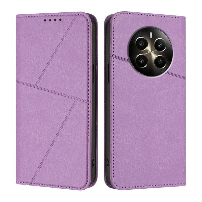 For Realme 12+ Strong Magnetic Frosted Flip Leather Phone Case(Light Purple)