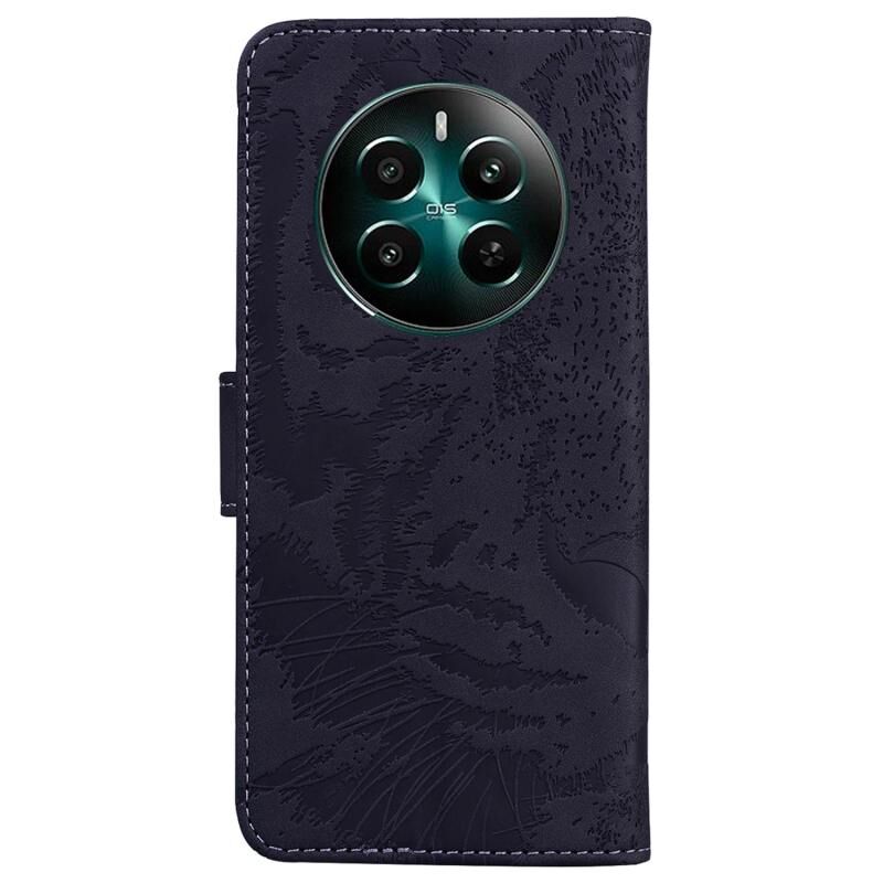 For Realme 12+ Tiger Embossing Pattern Flip Leather Phone Case(Black)