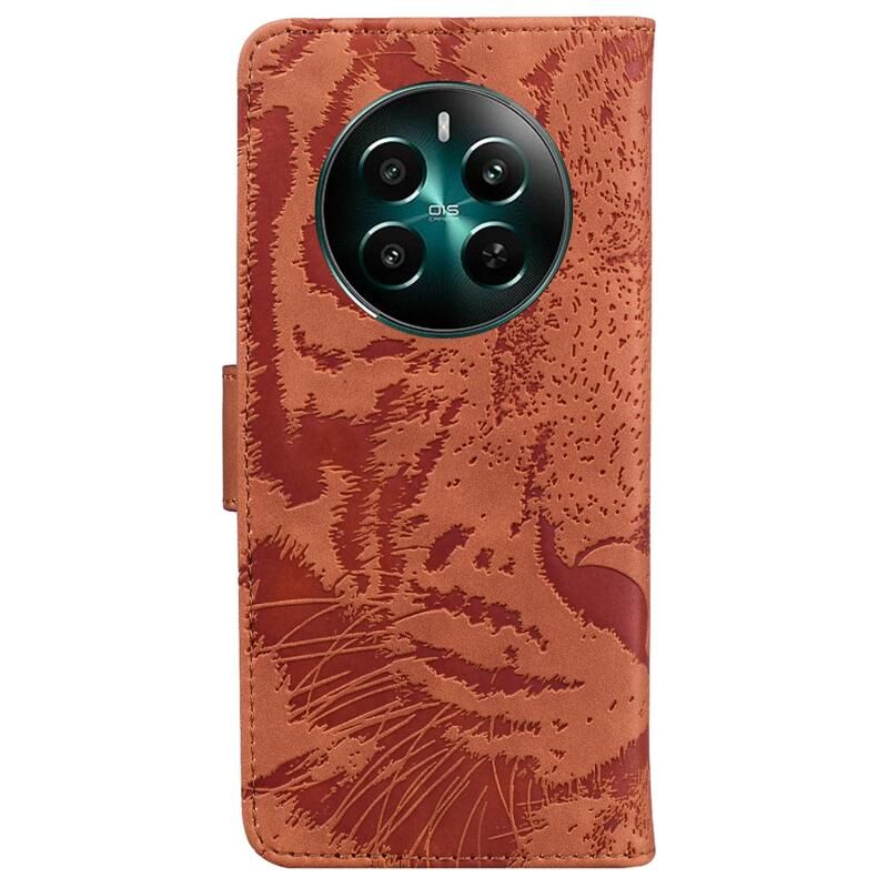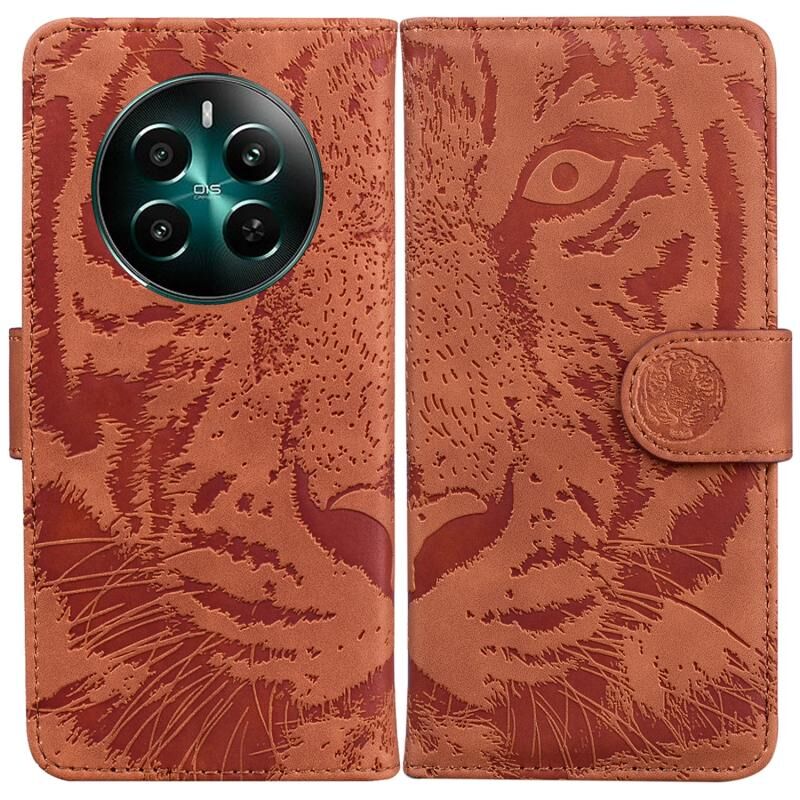 For Realme 12+ Tiger Embossing Pattern Flip Leather Phone Case(Brown)