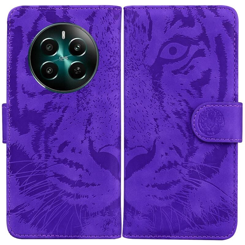 For Realme 12+ Tiger Embossing Pattern Flip Leather Phone Case(Purple)