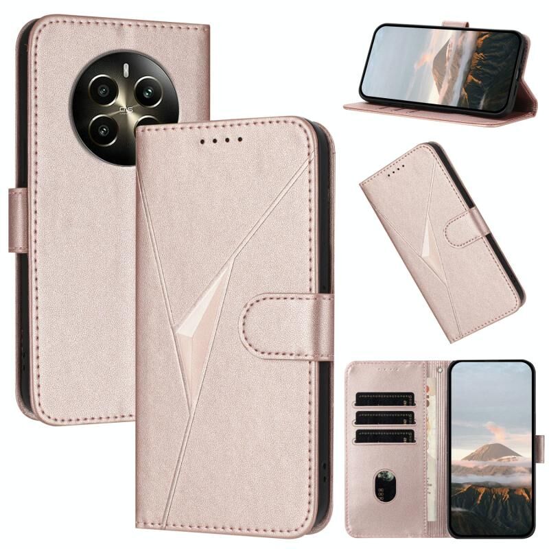 Για Realme 12+ Τρίγωνο μοτίβο αγκράφα κούμπωμα δερμάτινη θήκη τηλεφώνου (Rose Gold)