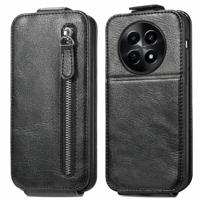 Για Realme 12 φερμουάρ πορτοφόλι κάθετη Flip δέρμα τηλέφωνο υπόθεση (Μαύρο)