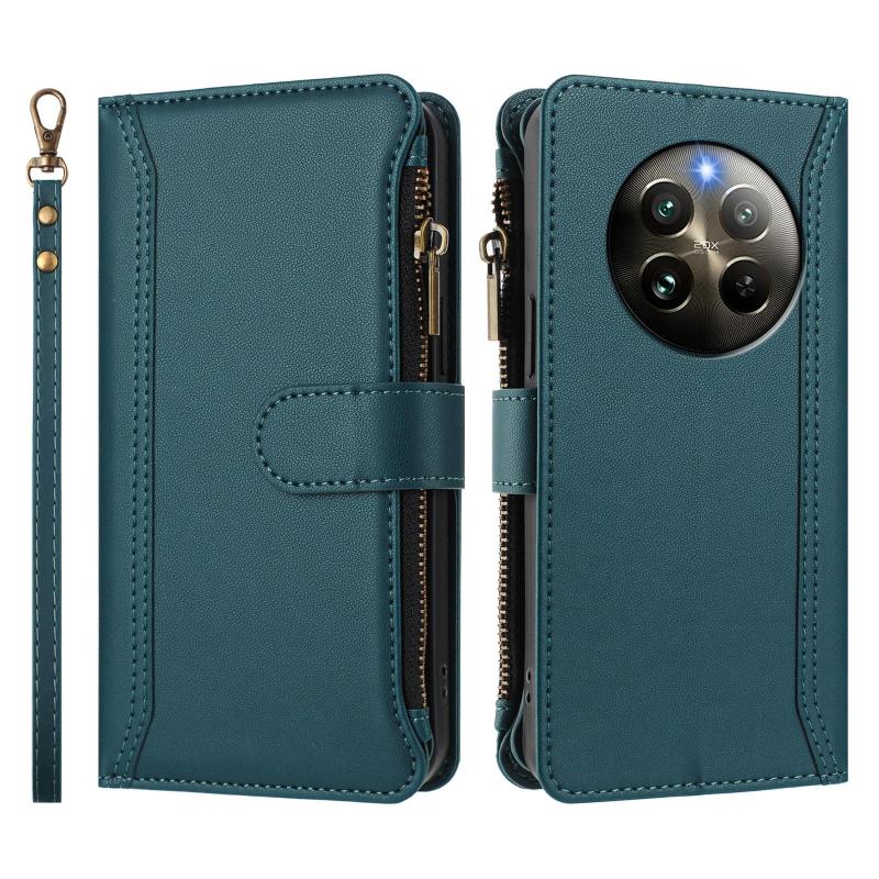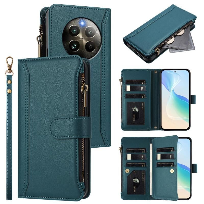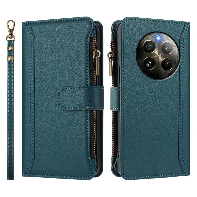 For Realme 13 4G Global / P1 5G Global Magnetic Closure 9 Card Slots Zipper Leather Case with Hand Strap(Dark Green)