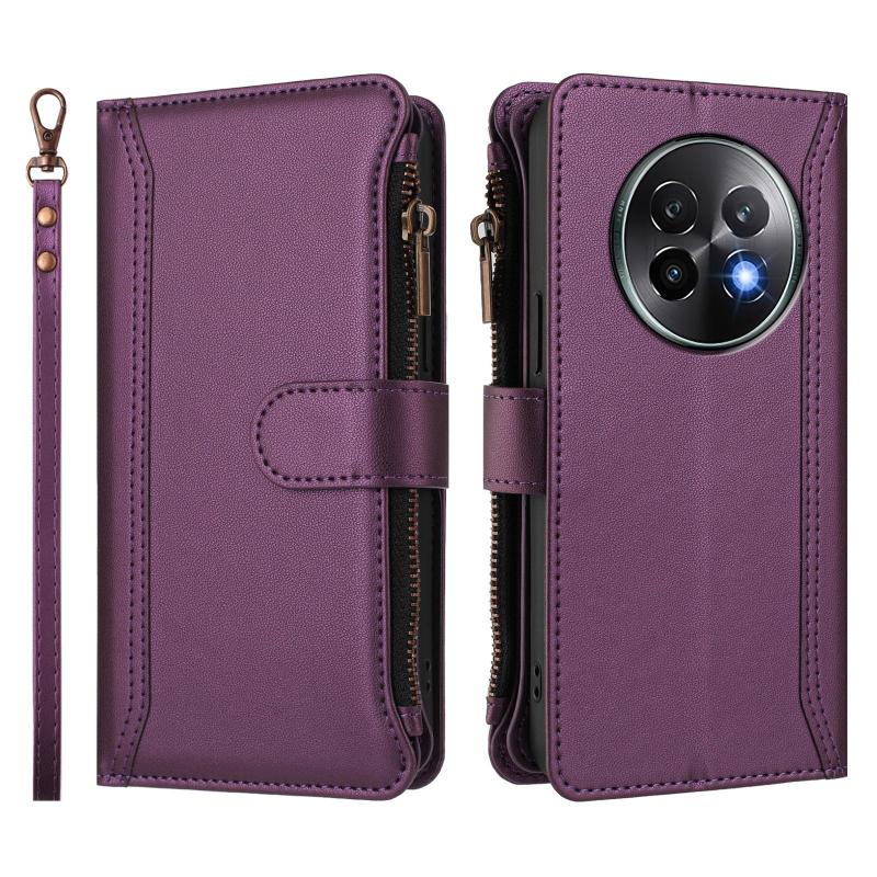 For Realme 13+ 5G Global Magnetic Closure 9 Card Slots Zipper Leather Case with Hand Strap(Purple)