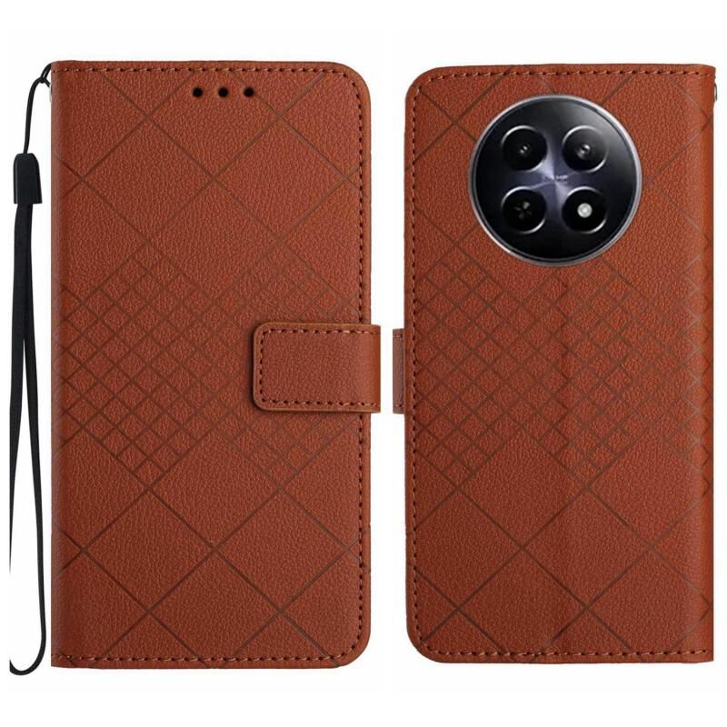 Για Realme 13+ 5G Global Rhombic Grid Texture Δερμάτινη θήκη τηλεφώνου (καφέ)
