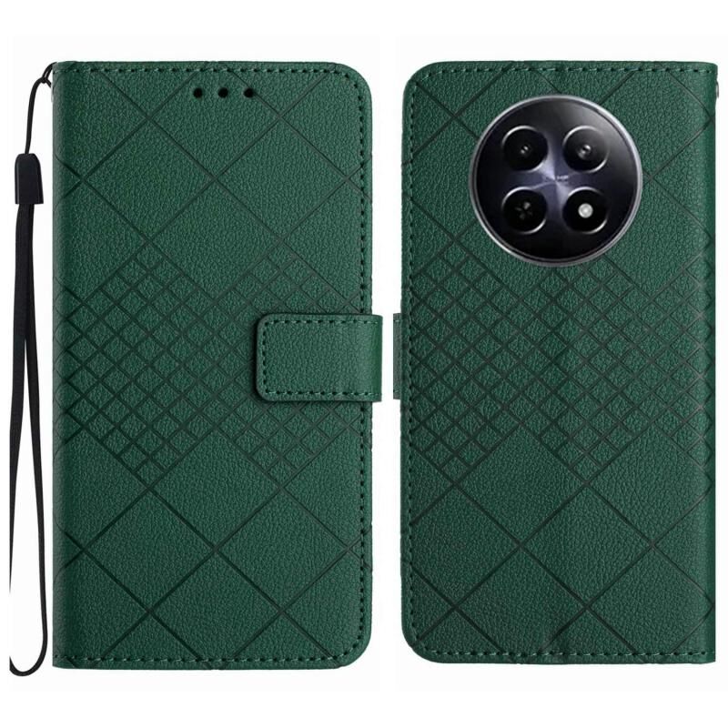 Για Realme 13+ 5G Global Rhombic Grid Texture Δερμάτινη θήκη τηλεφώνου (πράσινο)