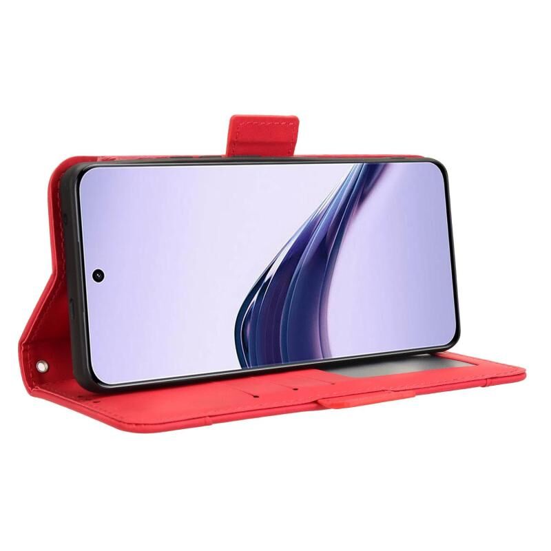 Για Realme 13 + 5G Παγκόσμια αίσθηση δέρματος δέρμα μοσχάρι υφή κάρτα υποδοχές δερμάτινη θήκη τηλεφώνου (κόκκινο)